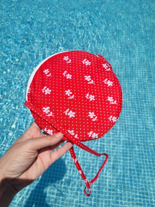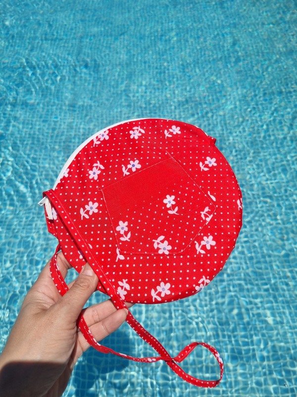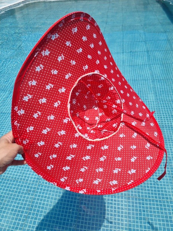 Sombrero vtg plegable. Es de tela de avión por lo que resulta ideal para llevar de vacaciones, se seca rapidísimo y no ocupa espacio. Además la funda es una mini carterita ideal para llevar dinero y llaves.