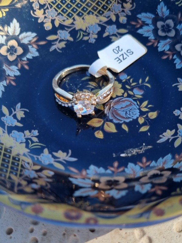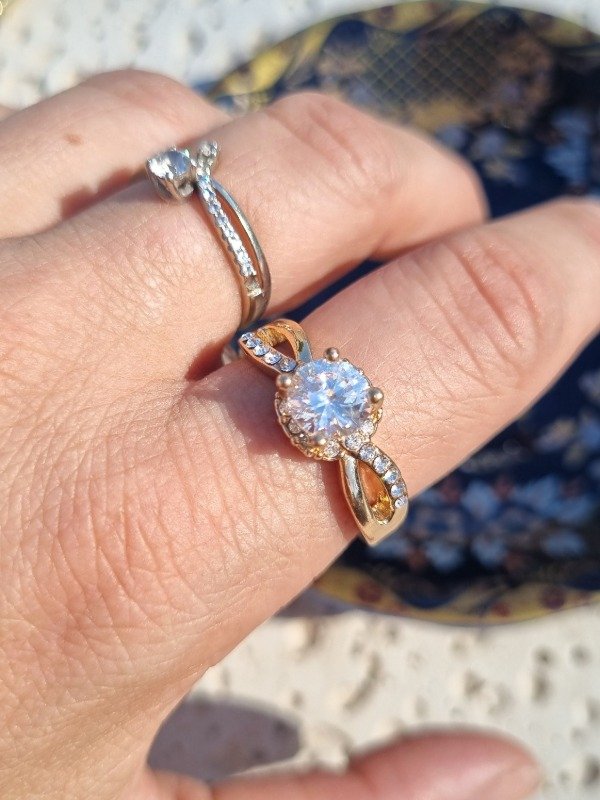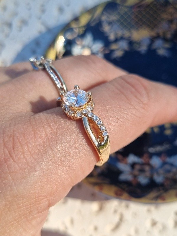 Anillo color dorado con cristal central engarzado. Sin uso