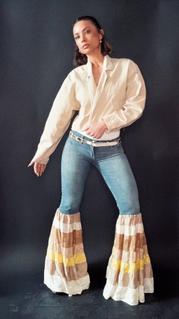 Jean Little Stone vtg 90s elastizado tiro bajo, remade.