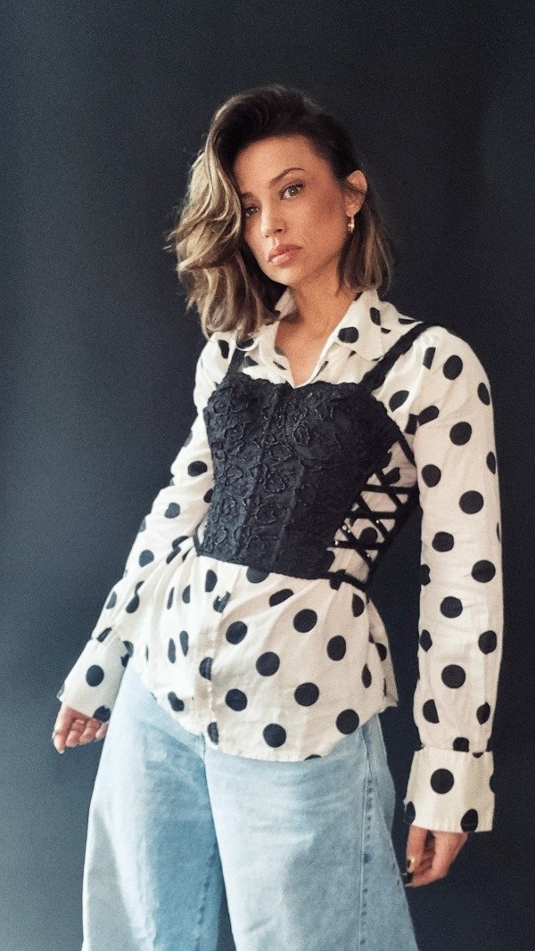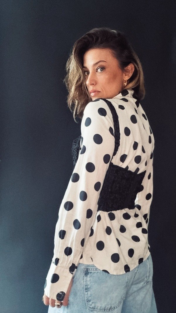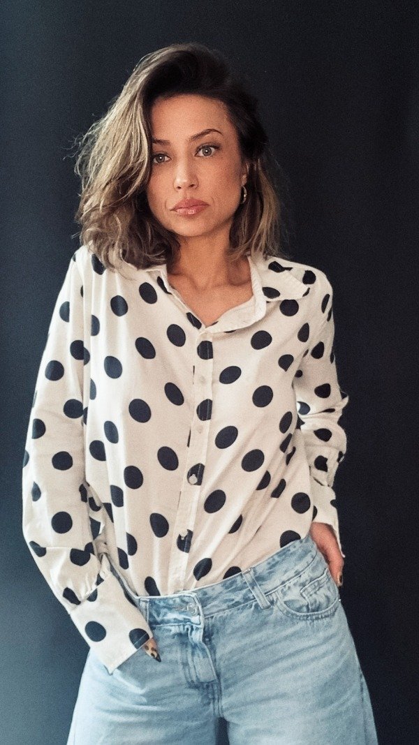 Camisa Jazmin Chebar a lunares de algodón super suave.