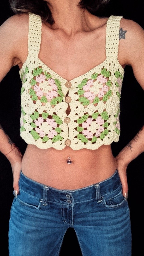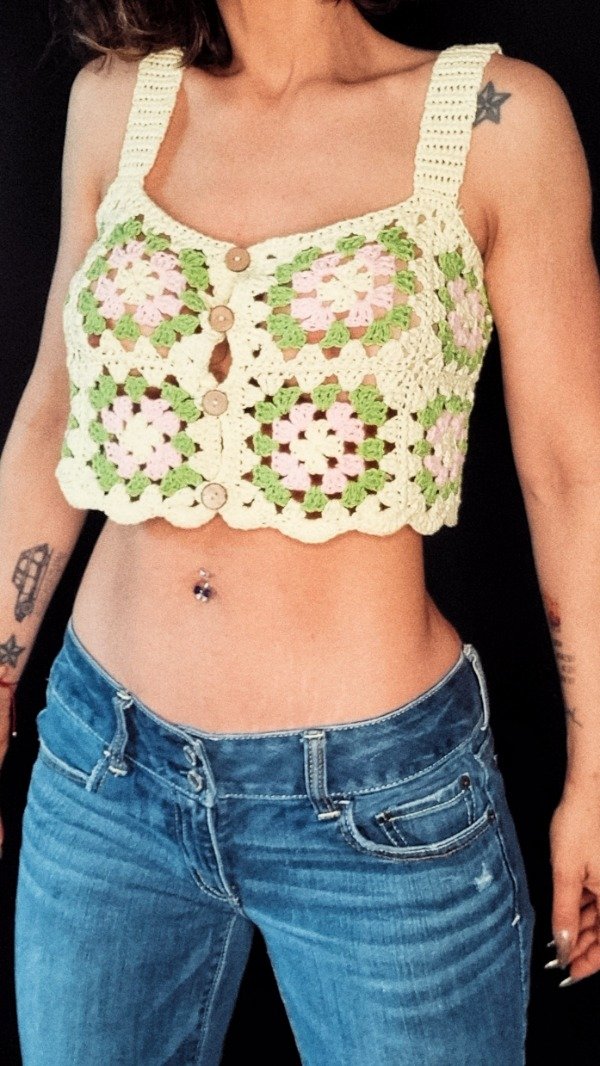 Top de hilo tejido a crochet, sin uso.
