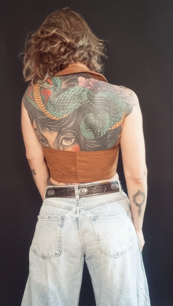 Top vintage vtg 90s de cuero acordonado al frente. Forrado.